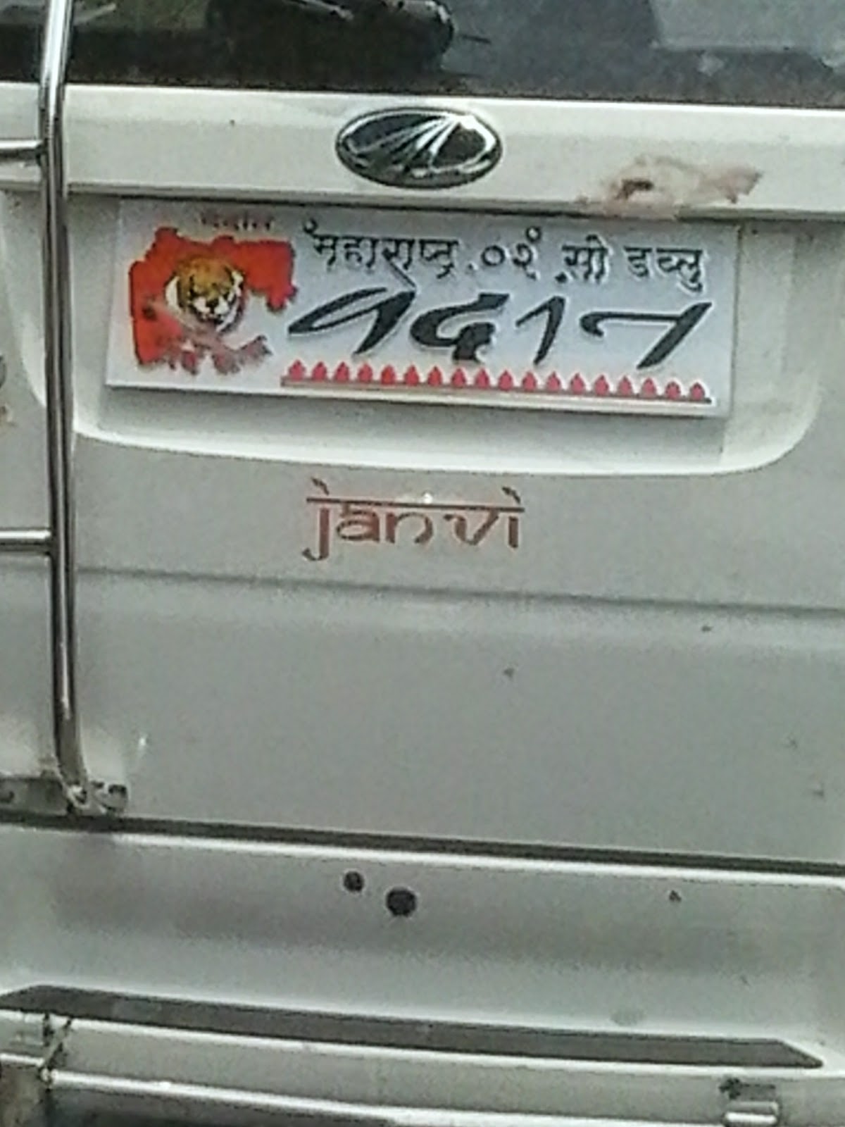 Waiting at a traffic light this afternoon I found myself behind this number plate. This is not the first time I’ve seen a number plate that so blatantly flouts RTO rules that apply to mere mortals. Needless to say the other perp was also a political party who obviously thought that politicians are above the law.