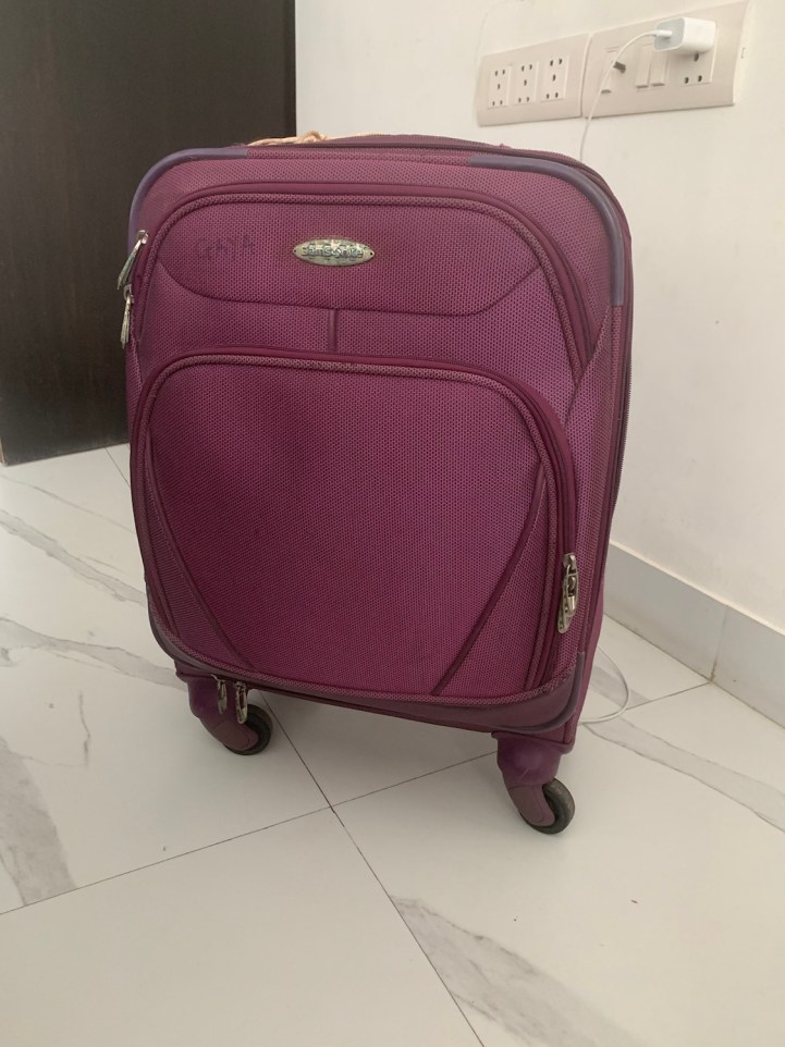 Many years ago, I had bought myself a smart, compact Samsonite wheelie in shocking purple that seemed to smile as it whirled around. I deliberately got this colour which would put off anyone else in my family from taking it on their travels. After all, they were the classic black bag types.
