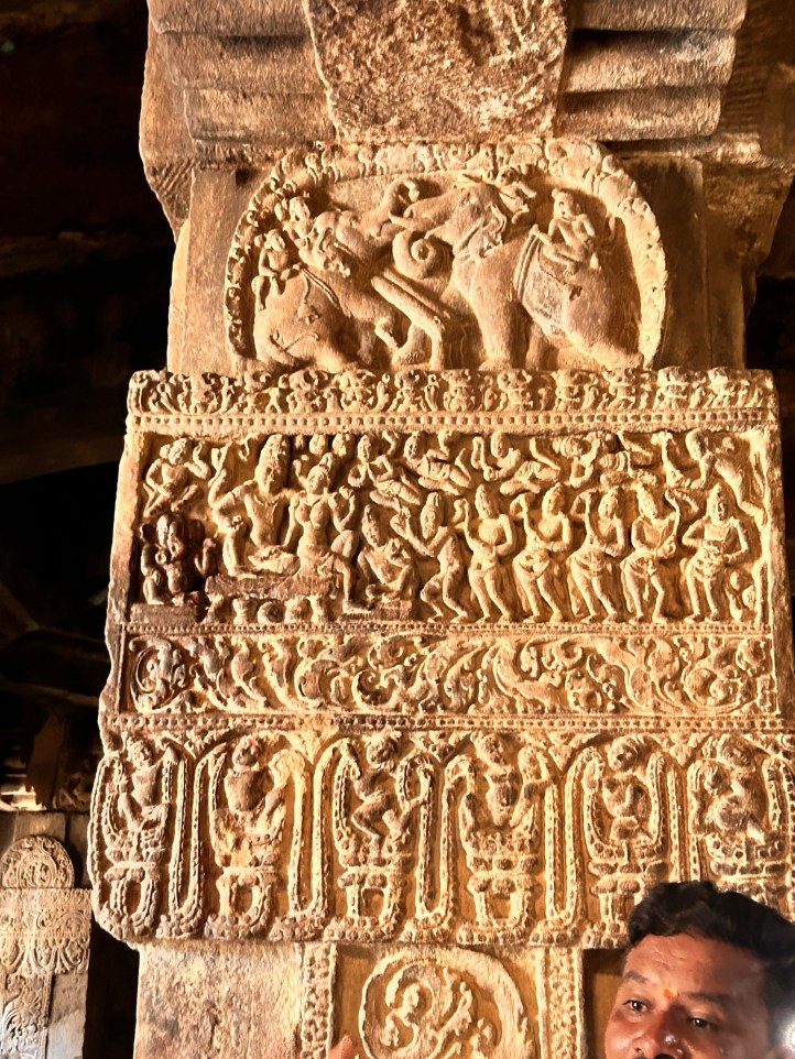 The exquisitely carved pillars inside the temple have stories of the Mahabharat, Ramayan and Panchtantra.