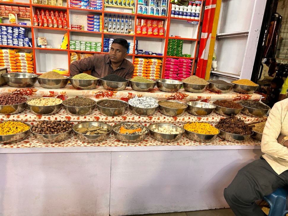 Having sampled the Karadant at Aihole, we had to take some back home . So after a visit to the spice shop where we could order freshly ground customised spice mixes, we ordered the sweets to be delivered to the hotel.